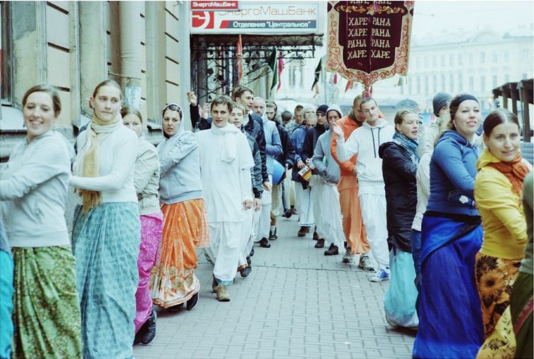 В петербургской ятре харинама является самым ярким способом распространения сознания Кришны.