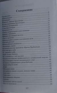 В книге рассматривается природа материальных привязанностей, контроль чувств, обуздание ума, преодоление вожделения, опыт различных религиозных конфессий в сфере практики целибата, воздействие страсти и невежества на человека, влияние внешней энергии, уклады жизни, жизнь в отречении и т. д.