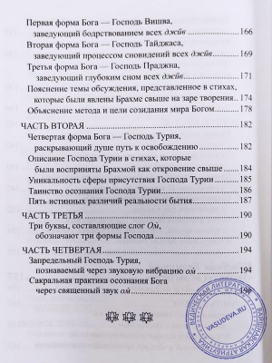 Из 10 главных упанишад, относящихся к дрейнейшей традиции Вед, в этой книге представлены 3 — как суть духовного послания "Атхарва-веды". Учитель Шри Мадхвачарья объясняет здесь религию установления сязи души со Всевышним как важнейшее учение, переданное нам из Золотого века.