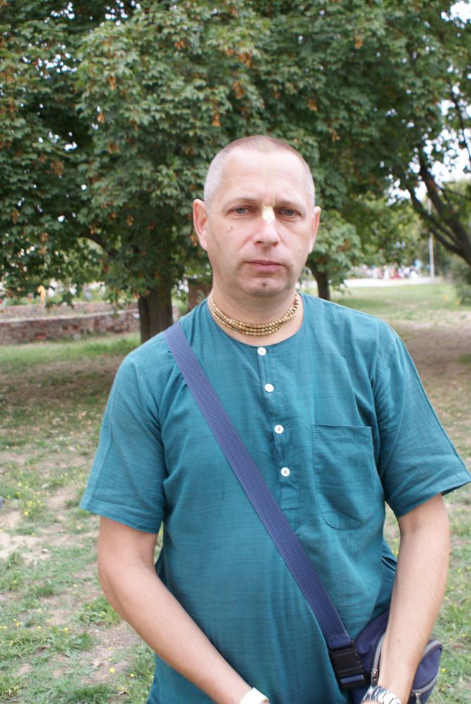Он от неожиданности аж присел и шепотом спросил меня, откуда я знаю про Кришну. В ответ я достал из своей куртки английский оригинал той книжки, что мне подбросили в Австралии. Я постоянно носил ее с собой и периодически перечитывал. Он был очень удивлен и тут же дал мне бумажку с адресом, по которому проходят программы. Это было где-то на улице Зои Космодемьянской или Зины Портновой (точно не помню название). Туда я отправился со своим старым другом, который тогда жил в Санкт-Петербурге. (Позже он получил имя Абхиманью дас). Там мы впервые послушали лекцию Маму Тхакура прабху, поучаствовали в киртане и попробовали прасад. После этой программы осталось ощущение, как будто я летел, не касаясь земли. Потом еще были личные встречи и беседы с Маму Тхакуром, новые книги, покупка «настоящих» четок, Бхагавад-гиты и многое другое.