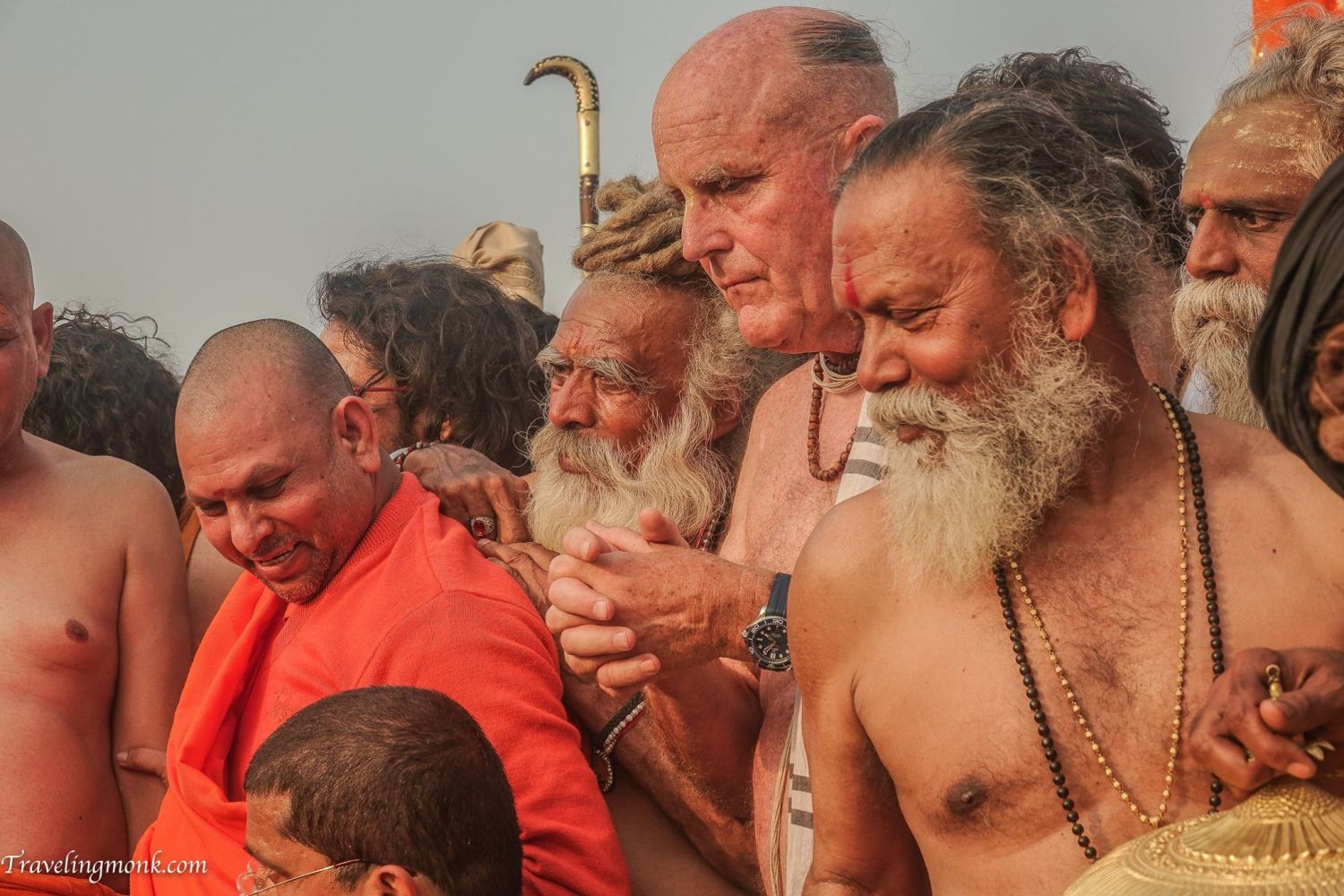 Мне удалось воссоединиться с садху всего в нескольких метрах от Тривени Сангам, где Ганга течет вдоль Ямуны, и мистическая река Сарасвати соединяет их из-под земли. К нам также присоединились Викрам и Картамаши, которые пытались фотографировать посреди всего этого. Его лицо было пепельным.