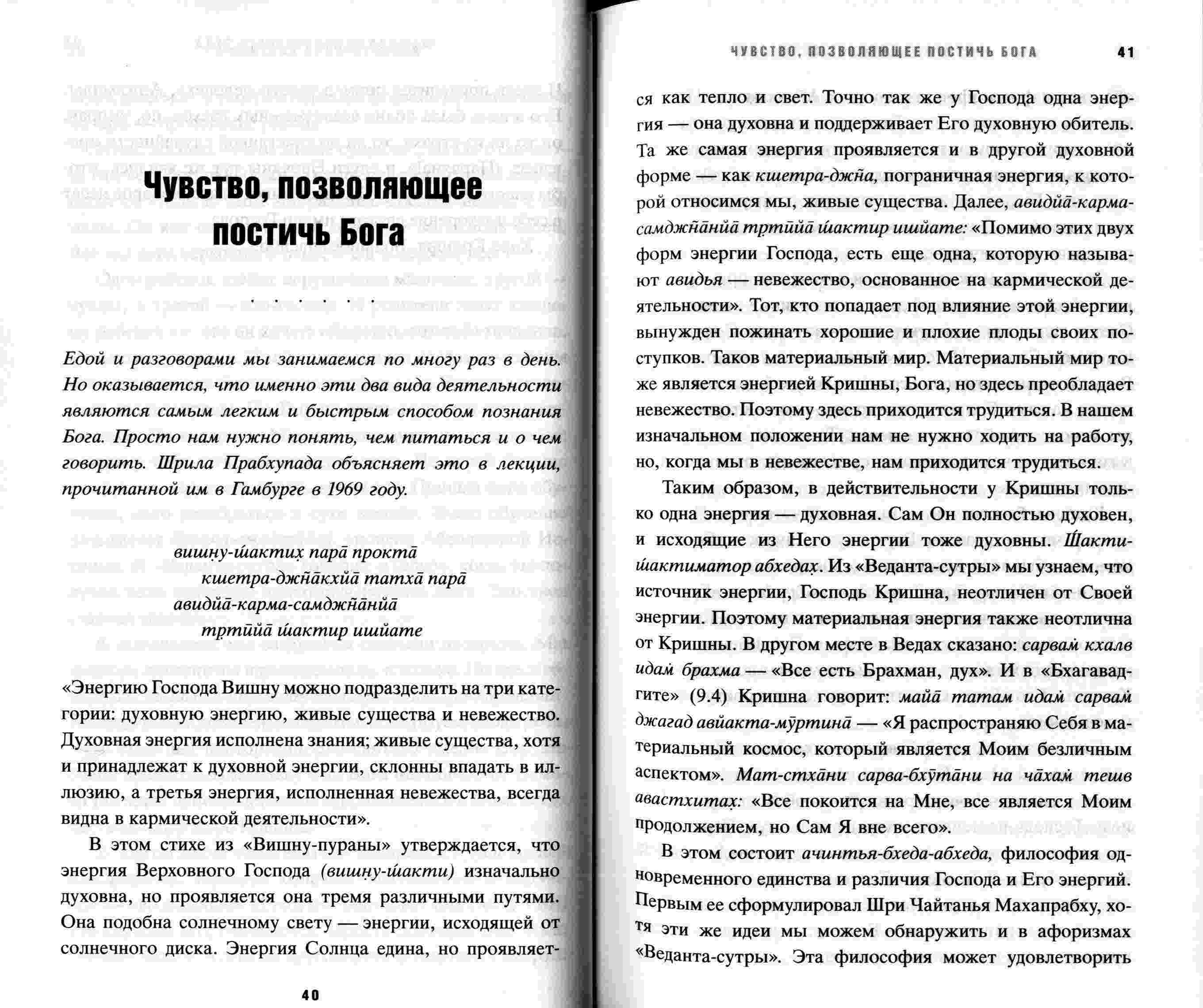 В книге, которую вы держите в руках, Шрила Прабхупада указывает нам истинный путь к просветлению и приглашает отправиться по нему из темной ночи материализма к солнечному дню трансцендентного. Широко признанный в научных и духовных кругах как крупнейший учитель индийской культуры и философии в современную эпоху, Шрила Прабхупада — опытный проводник в нашем путешествии к вершинам духовности.