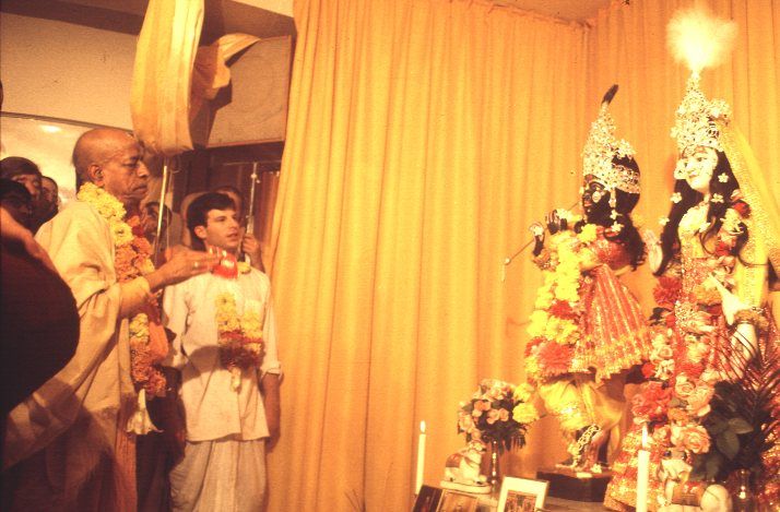 «Насколько я понимаю, в лондонском храме все идет отлично. Вы, конечно, служите Господу настолько тщательно, что Радхарани прольет на вас Свои благословения, подняв правую руку, обращенную ладонью вперед. У тебя прекрасная жена, преданная и разумная. Вот вы, муж и жена, и следите, что поклонение было регулярным и тщательным, и так ваша жизнь станет счастливой и успешной. Параллельно вы оба должны обучать своих юных братьев и сестер служению Господу, чтобы в случае, если вы оба уедете проповедовать, храмовая программа не пострадала бы. Мы должны следовать двум важным линиям, именно: панчаратрика-видхи и бхагавата-видхи. Бхагавата-видхи — это проповедническая деятельность и санкиртана, а панчаратрика-видхи — это храмовое поклонение Божествам. Храмовое поклонение очищает нас, а когда мы проповедуем с чистым сердцем, наша проповедь немедленно приносит плоды. Так что нам надо вести эти две параллельные линии одновременно, чтобы с успехом исполнять преданное служение». (ПШП Гурудасу, 15 марта 1970)
