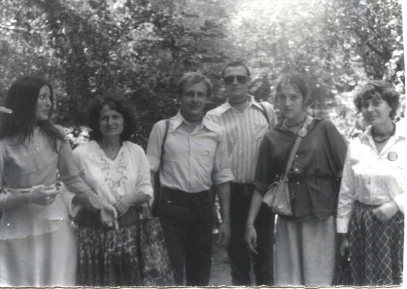 На фото запечатлены героические участники «странствующей санкиртаны» 80-х гг. В центре слева направо: Джапа дА.; Айодхья-пати дА из Таллинна; Шримати Экадаши и Шримати Махамантра.