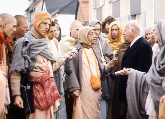 Карлфрид Дюркгейм беседует с Бхактиведантой Свами Прабхупадой (июнь 1974 года, неподалёку от Франкфурта-на-Майне, ФРГ)